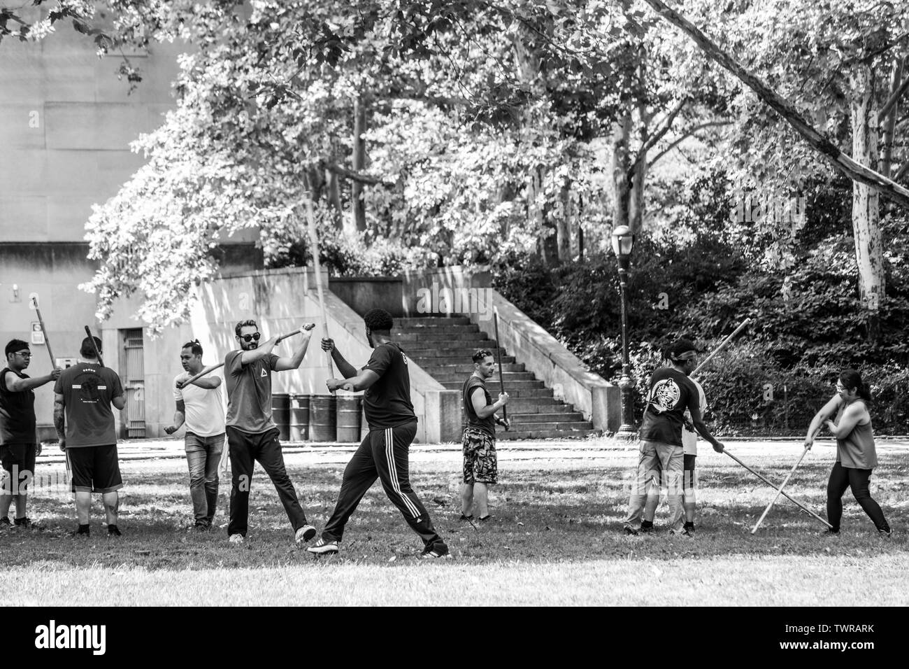 Young Men And Women Practicing Martial Arts Using The Stick Fighting Technique In A Park In Brooklyn New York City Stock Photo Alamy